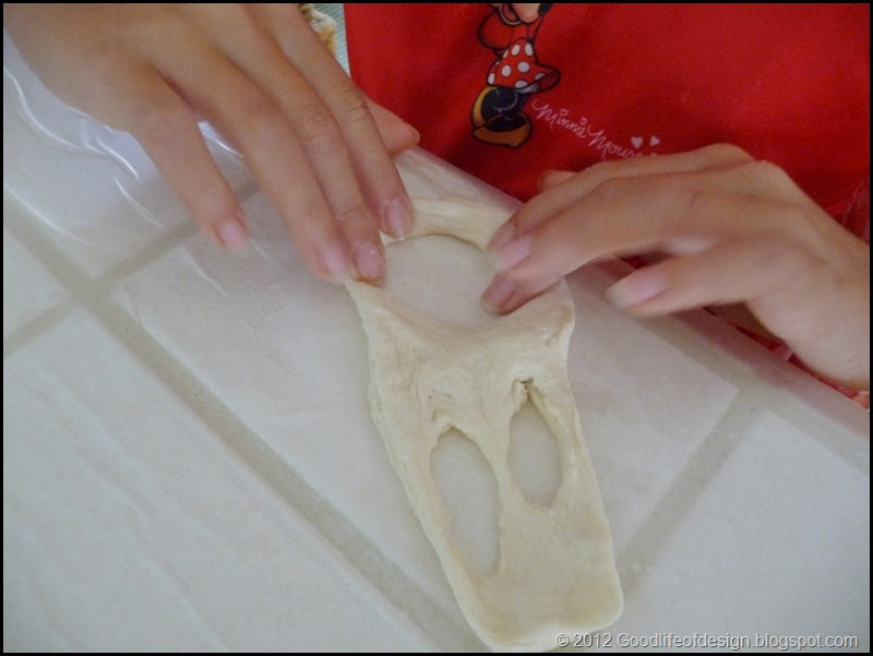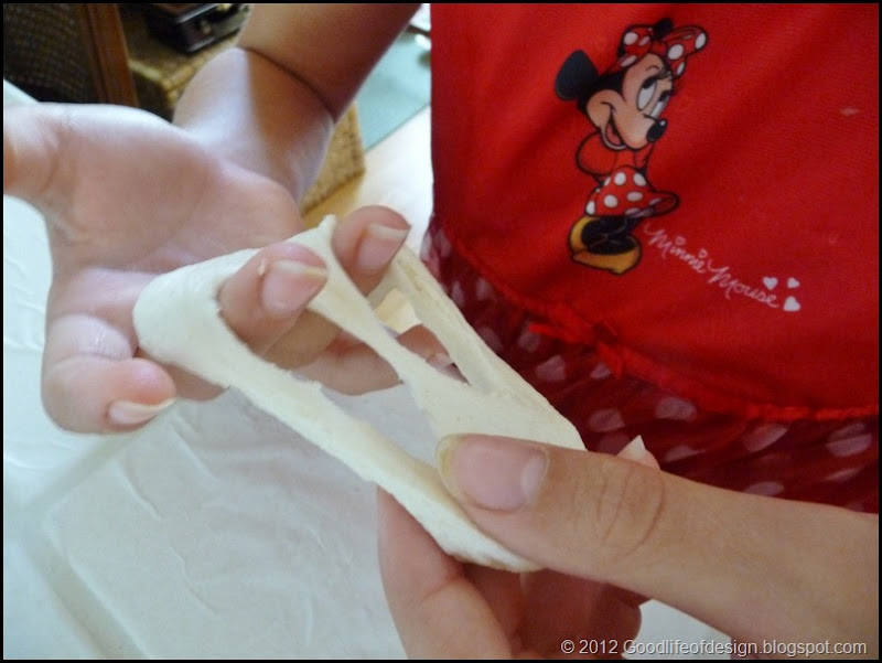 Then they need to stretch the holes to make them as big as they can without breaking the dough (if they break the dough apart, just put in a patch, no big deal)……