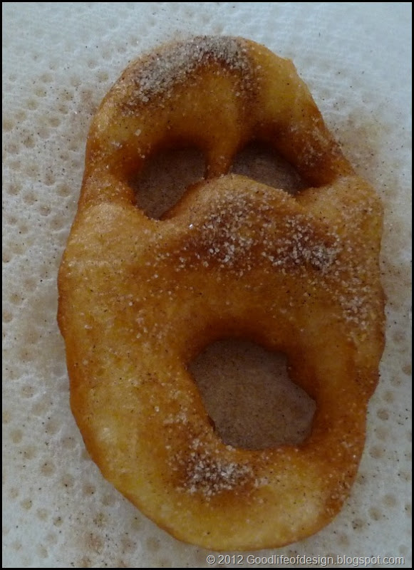 Now for a dusting of something to make it sweet. We like cinnamon, and sugar on our doughnuts, but you could also use powdered sugar for a white ghost if you like.