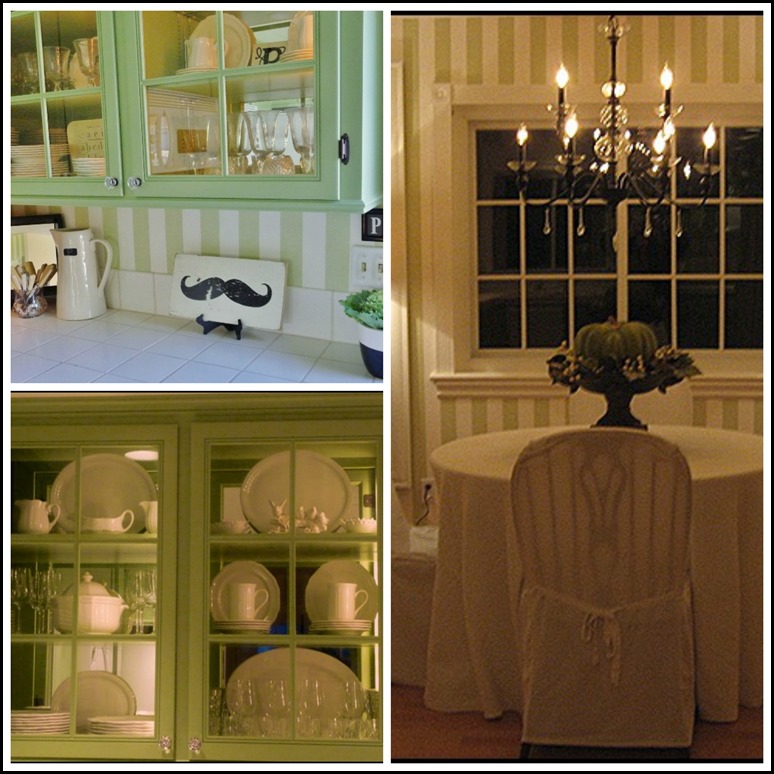 The back of my home is a soft green with cobalt blue and black and white striped accents.