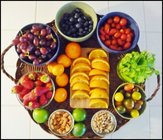 This is a tray that I did when I had some overnight guest using fresh produce of the season and pecans and walnuts.