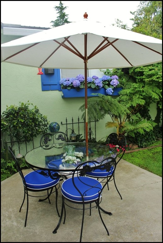 I have two seating areas, one for lounging around the pool and at night sitting by the fire in the chimnea. The other is where we eat breakfast and dinners.